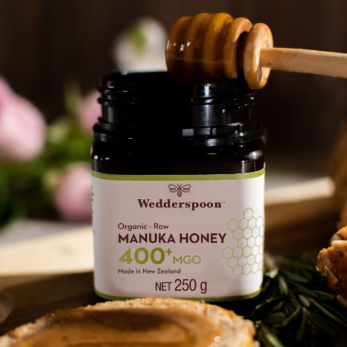 Miód Manuka Wedderspoon bogaty w unikalny dla miodu manuka methylglyoxal w stężeniu minimum 400mg./kg