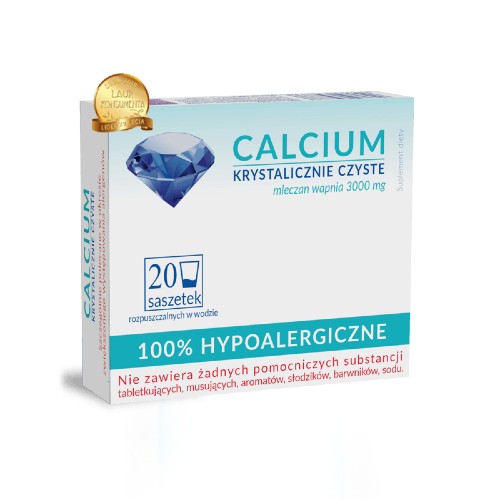 Hypoalergiczny produkt na bazie mleczanu wapnia, przeznaczony do uzupełnienia diety w wapń, szczególnie dla osób, które mogą być uczulone na niektóre substancje występujące w tabletkach musujących.